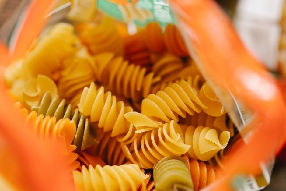 Fusilli‚ characterized by its corkscrew shape‚ and rotini‚ a similar spiral pasta‚ are excellent at capturing sauces within their twists․ This makes them ideal partners for pesto‚ creamy sauces‚ or chunky vegetable medleys․ Their playful form adds visual appeal to any dish‚ appealing to both adults and children․